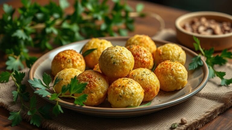 Esses bolinhos crocantes combinam perfeitamente com uma salada fresca de folhas e tomate com molho caseiro, ketchup artesanal, ou acompanham receitas como carne moída feita em casa e bifes enrolados.