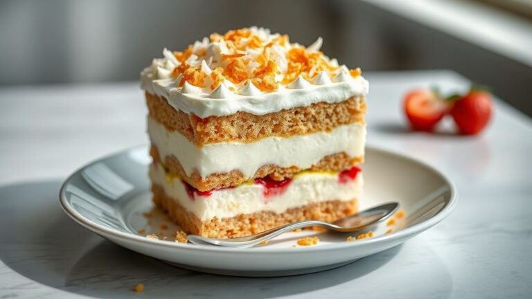 O bombom de coco de travessa com bolo é uma sobremesa prática, cremosa e cheia de sabor. Ele combina camadas macias de bolo desfeito, um recheio de creme branco com coco e uma cobertura de ganache de chocolate que deixa tudo ainda mais especial.