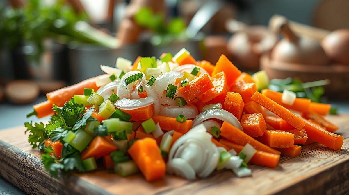 Você pode variar as combinações acrescentando alho-poró, cebola-roxa, ervas frescas como tomilho ou salsinha, conforme sua preferência. Durante o cozimento, manter o fogo baixo permite que os sabores se desenvolvam lentamente, resultando em um caldo mais equilibrado.