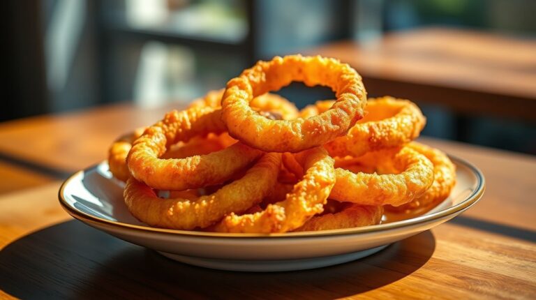 - Não sobrecarregue a fritadeira: Frite poucos anéis por vez. Isso evita que a temperatura do óleo caia e a cebola fique encharcada.
