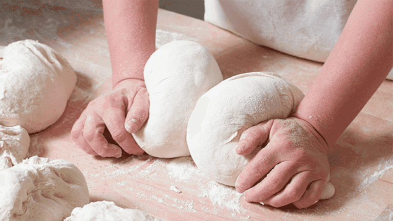 - Sove a massa em uma superfície enfarinhada por 10 minutos, até ficar lisa e elástica.