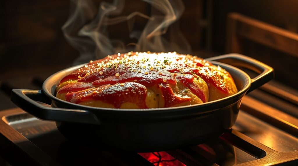 - Passo 4: Leve ao forno pré-aquecido a 230°C por 90 minutos. Na metade do tempo, verifique e vire a carne se necessário.