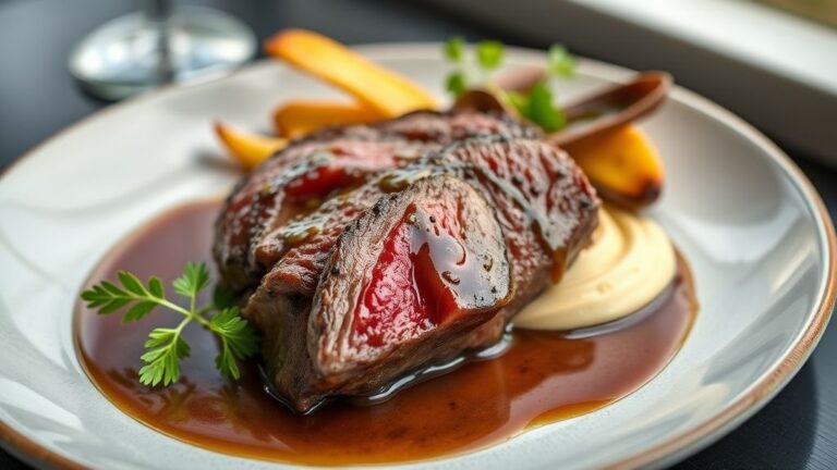 - Purê de batata cremosa: Cria contraste suave com o molho denso e absorve o sabor do vinho.