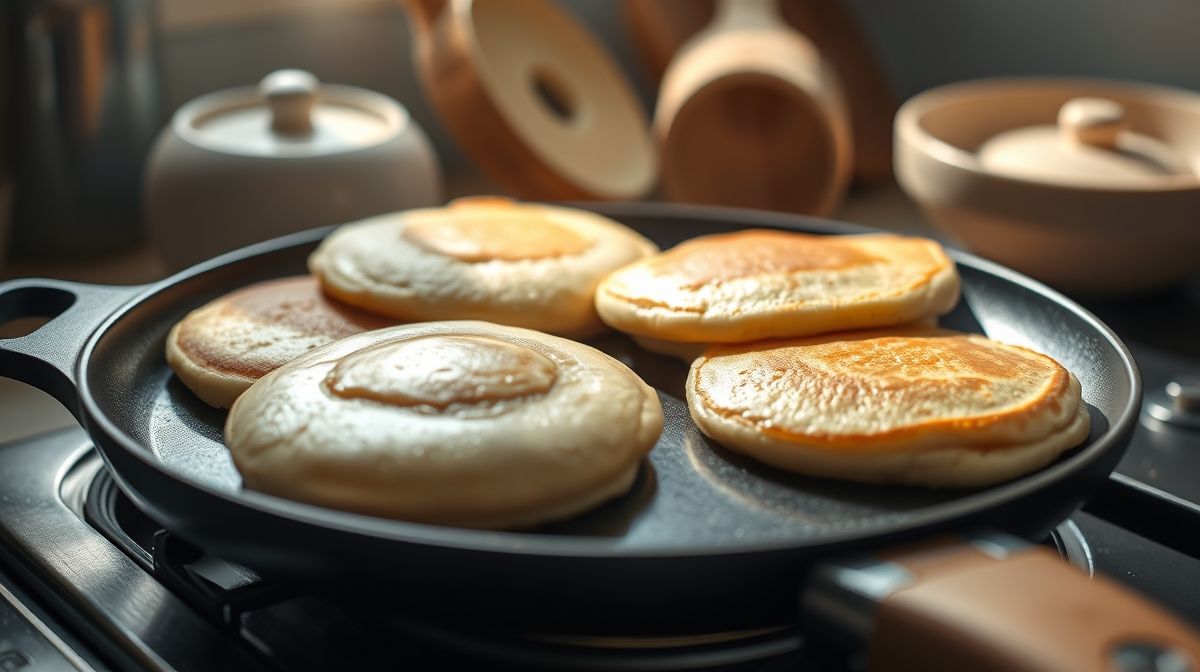 - Cozinhe por cerca de 1 minuto de cada lado, até a panqueca ficar firme e dourada.
