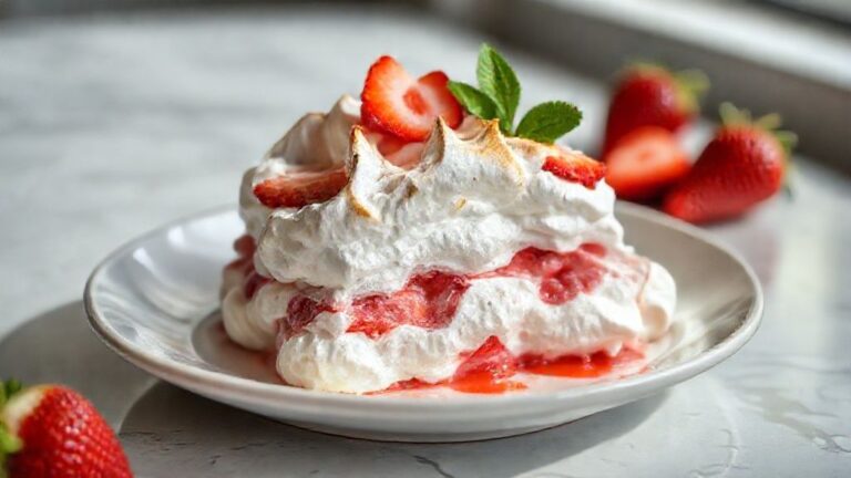 Este merengue de morango com creme leve e doce é uma sobremesa clássica e elegante, perfeita para encerrar um almoço de domingo ou impressionar em um jantar especial. A combinação de merengue crocante, creme suave e morangos frescos cria uma textura e sabor que encantam à primeira colherada.
