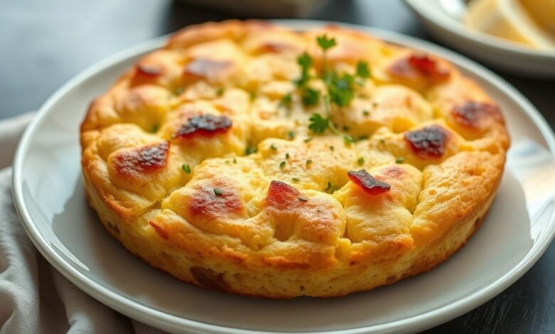 Pão de maisena na frigideira dourado e fofinho servido em prato branco, ideal para lanche rápido