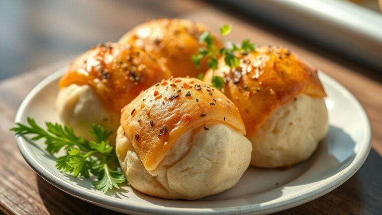 - Cocção: Aqueça uma frigideira antiaderente em fogo baixo e unte com manteiga ou óleo. Disponha os pãezinhos deixando espaço entre eles. Tampe e deixe dourar por cerca de 4–5 minutos de cada lado, até estarem firmes e levemente crocantes.