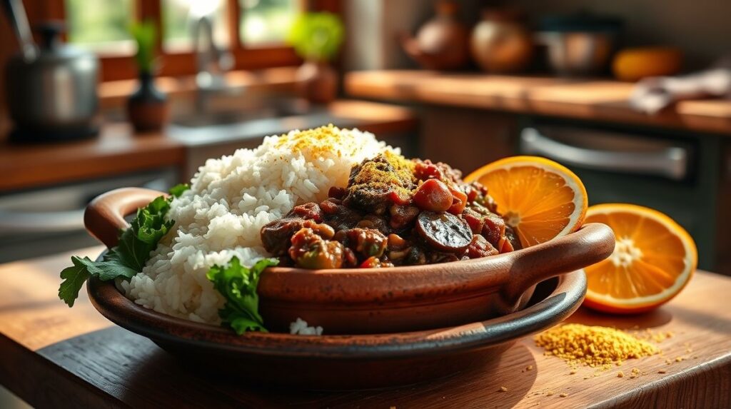 - Arroz branco: serve como base neutra e equilibra os sabores intensos.