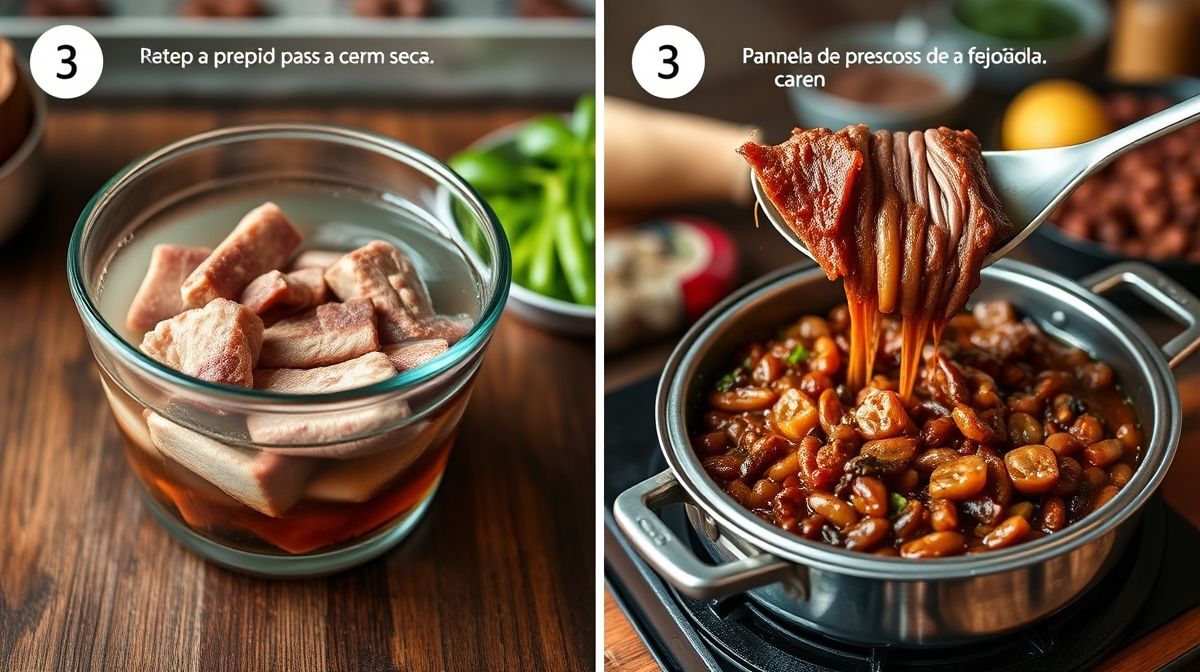 A carne seca exige um preparo cuidadoso antes de ser incorporada à feijoada, pois sem a dessalga correta, ela pode deixar o prato excessivamente salgado e com uma textura indesejada. O processo essencial consiste em duas etapas fundamentais: dessalgar e cozinhar no tempo ideal.