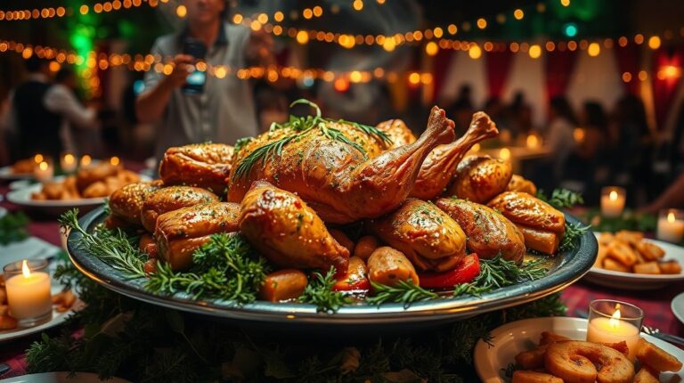 - Porção média por pessoa: Para eventos com acompanhamentos variados, recomenda-se calcular entre 150 g e 200 g de frango por convidado.