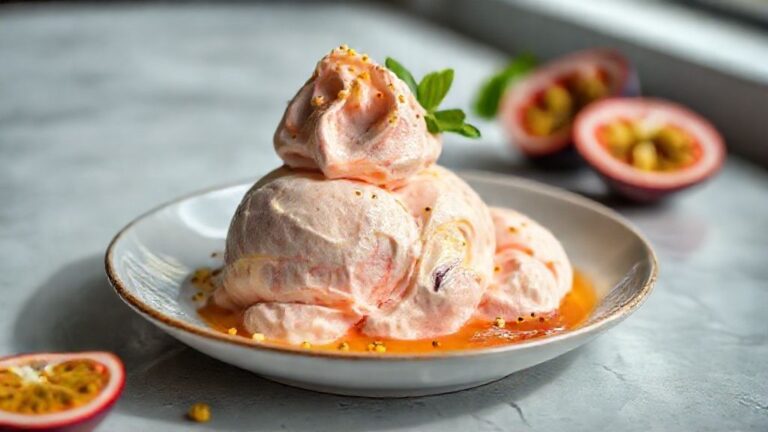 O maracujá é originário da América do Sul e amplamente cultivado no Brasil, onde é apreciado tanto em sucos quanto em sobremesas. O sorvete cremoso de maracujá foi popularizado pela praticidade e pela combinação perfeita entre o doce e o ácido. Em receitas modernas, ele representa o equilíbrio entre refrescância e indulgência, sendo presença constante em restaurantes e sobremesas caseiras tropicais.