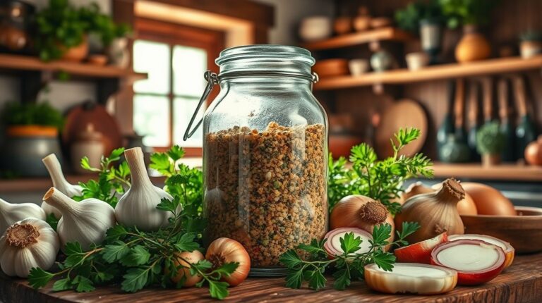 Para garantir o sabor e a durabilidade do seu tempero caseiro de alho e cebola, é essencial armazená-lo em pote de vidro limpo e manter sempre refrigerado. Use utensílios limpos para retirar porções e evite contaminação. Além disso, esse tempero é um coringa na cozinha: ideal para temperar carnes, arroz, massas, molhos e até recheios de tortas.