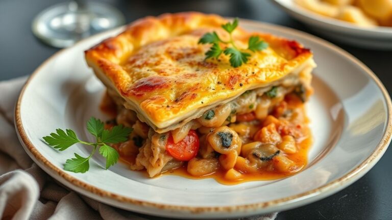 Se desejar, substitua o presunto por peito de peru defumado ou frango desfiado temperado. Para uma versão vegetariana, use apenas legumes como milho verde, espinafre refogado, abobrinha ralada ou brócolis cozidos. Outra opção é incluir catupiry ou requeijão cremoso entre as camadas, deixando a receita ainda mais suculenta.